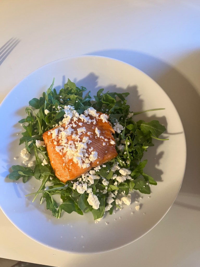 - Top the salad with the salmon